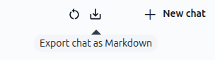 In the top, click the export button to export conversation as Markdown.